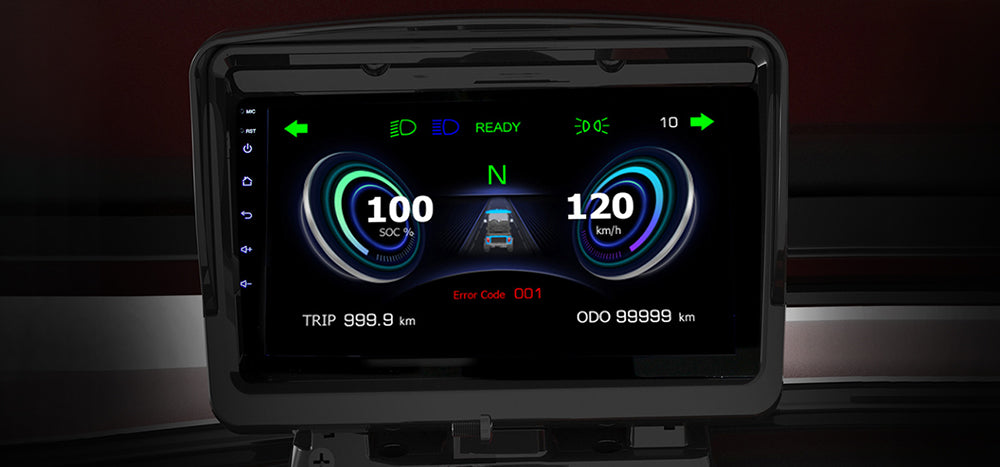 The 9-inch touchscreen offers full integration for speed, gear indication, lighting, and odometer tracking. Stay connected through Bluetooth, enjoy music, access the backup camera, and control your entertainment with ease.